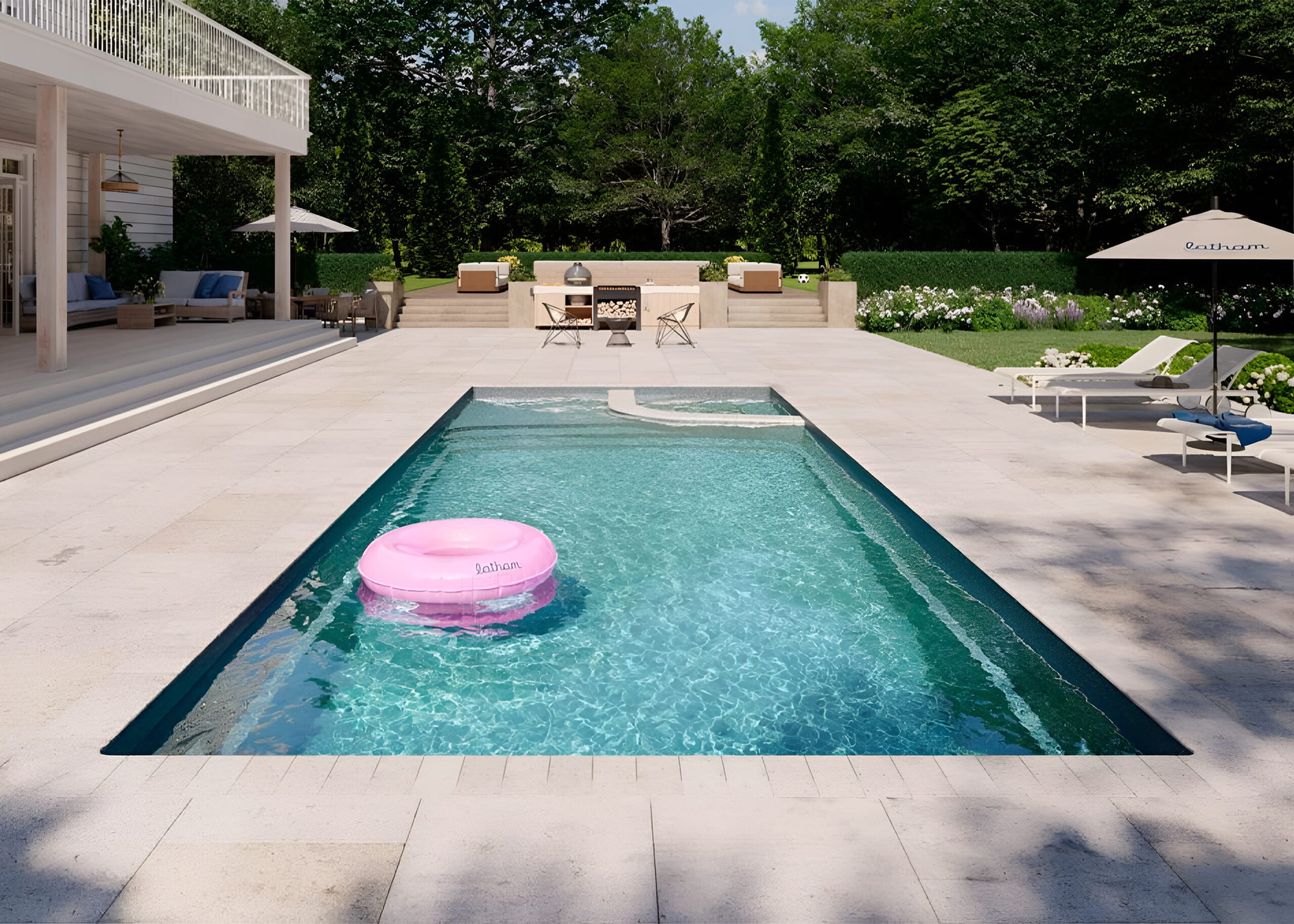 The Cayman 14 Deluxe transforms your backyard into a private retreat, featuring an integrated spa, tanning ledge, and swim-up seating. Stylish yet space-efficient, it’s thoughtfully designed for easy relaxation, social connection, and enjoying the sun in total comfort.
