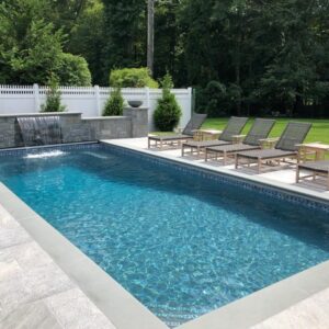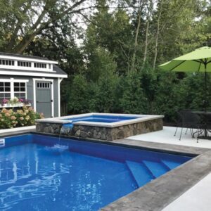 The St. Thomas 14′ x 31’7″ is a fiberglass pool from Latham Pools, featuring a simple yet elegant rectangular design. Perfect as a luxurious backyard centerpiece, it offers relaxation and functionality for all ages.