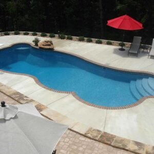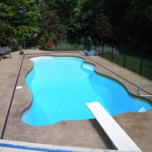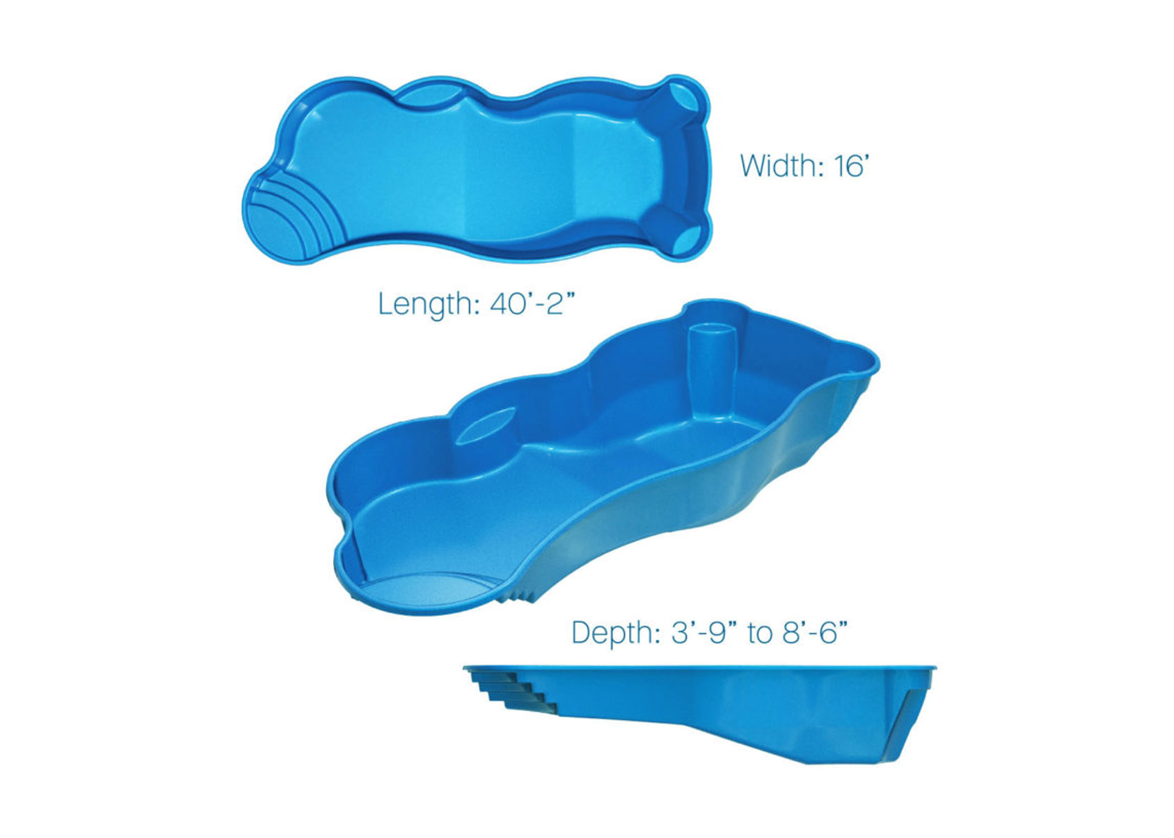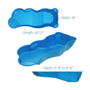 The Genesis 16′ x 40′ 2″ from Latham Pool is a freeform fiberglass pool with delicate curves, offering a harmonious backyard experience. Its spacious design and customizable features make it ideal for swimming, diving, and relaxation.