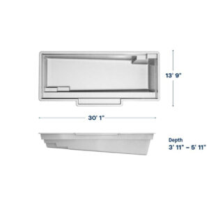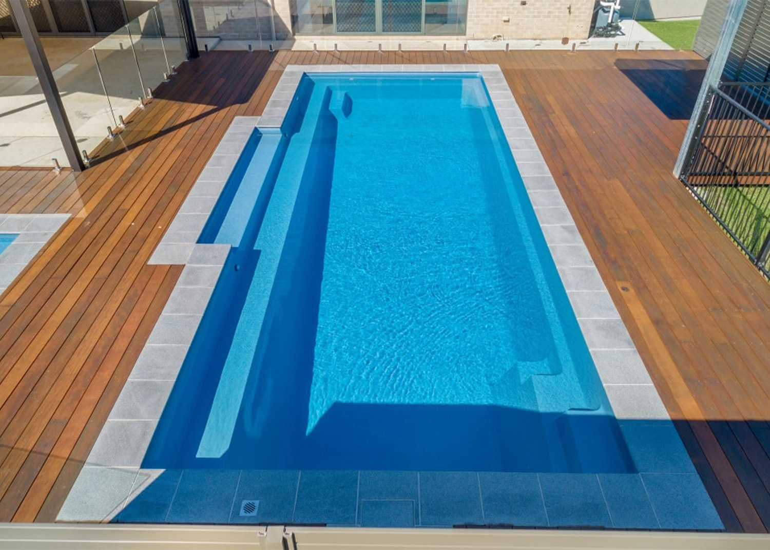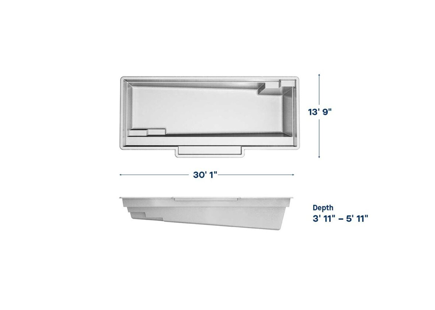 The Tuscan 13′ 9″ x 30′ 1″ offers a more spacious swim area while preserving its most-loved features, including integrated seating and a generous, uninterrupted swim lane.